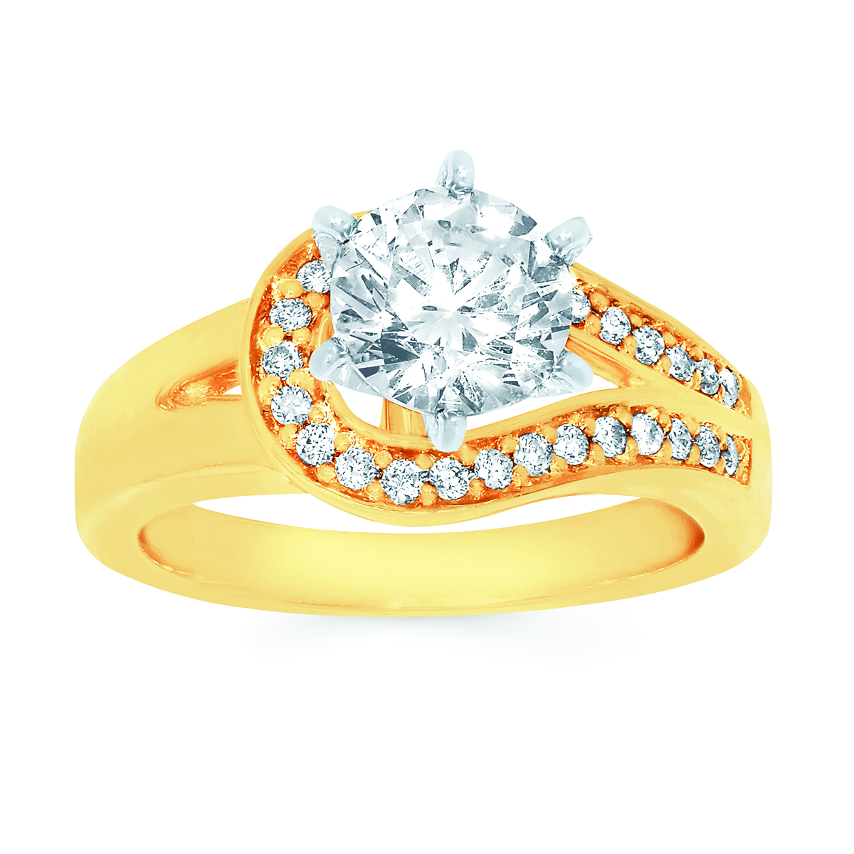 Engagement Ring Heritage Classic Bridal: 1/5 Ctw. Diamond Semi Mount shown with 1 1/2 Ct. Round Center Diamond in 14K Gold