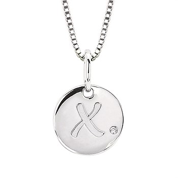 Diva Diamonds® Letter X Pendant In Sterling Silver With .01 Ct. Diamond With 18" Box Chain (Adjustable To 16") And Lobster Claw Clasp Diva Diamonds?? Letter X Disc