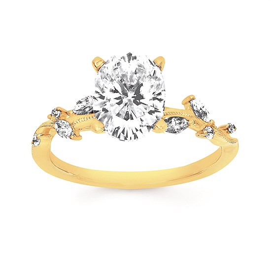Engagement Ring Forever ElegantĀ® 1/5 Ctw. Diamond Semi Mount shown with 2 Ct. Oval Center Diamond in 14K Gold